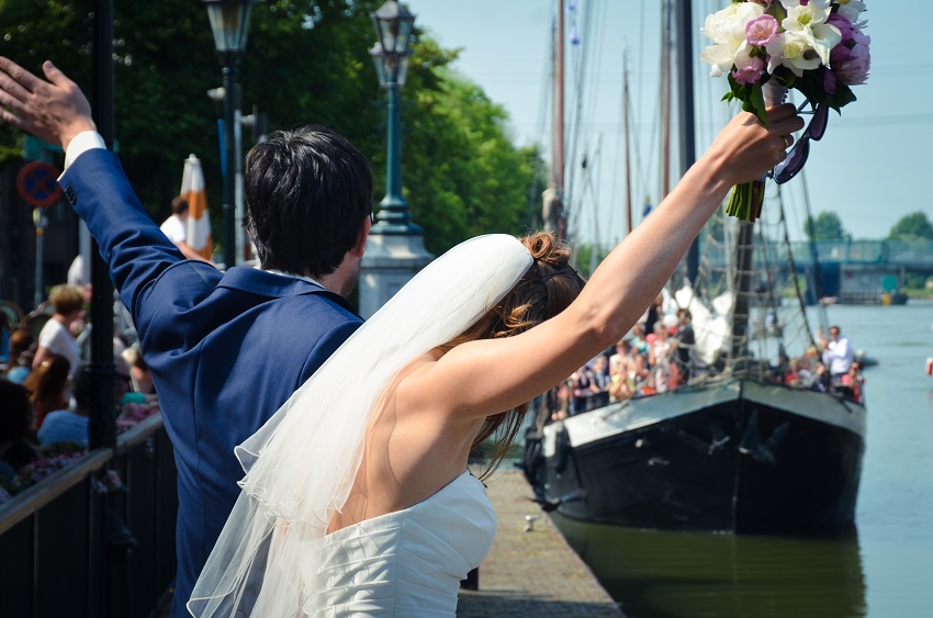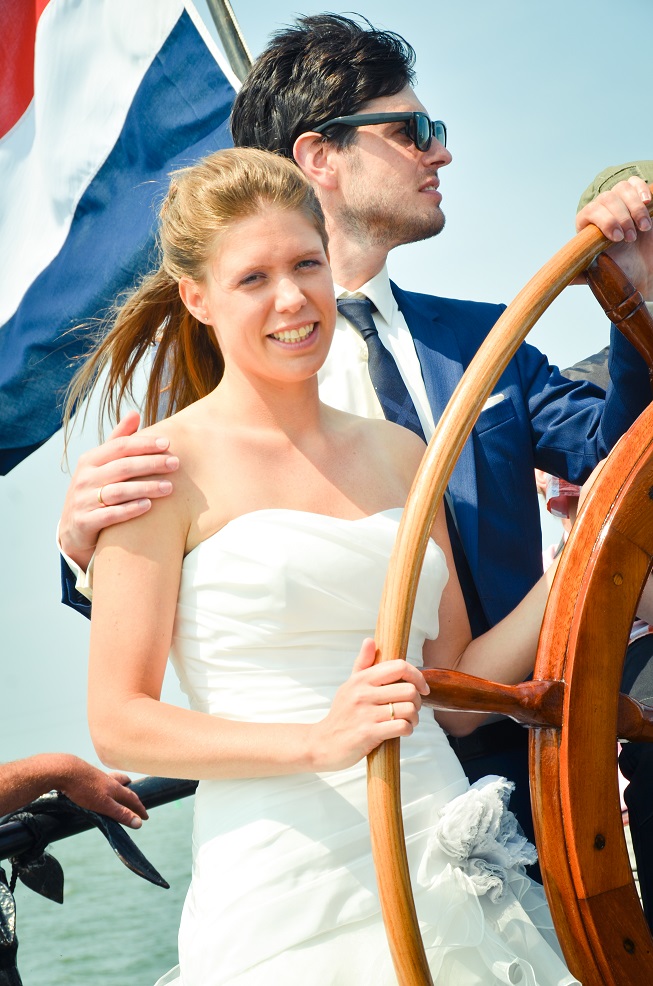 With us, it is possible to get married on board of a traditional ship. A registrar of the city of Muiden will join you in matrimony on board of the ship. Now that’s an exclusive wedding! After the ceremony you will cut the wedding cake and uncork the champagne. When the registrar leaves the ship, we will cast off for a sailing trip. You will rent the ship for your guests exclusively. Muiden is an authentic and romantic city, with its beautiful castle, the Muiderslot, that is perfectly suitable for taking pictures of this memorable day.
