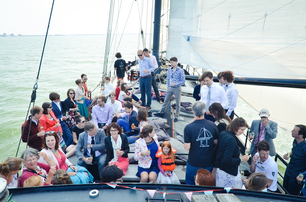 Wanneer jullie gezelschap niet al te groot is, zeg ca. max. 80 man, dan kan er ook op de boot gefeest worden. Tot 60 personen kan dit op het water en kan de volumeknop wat hoger. Bij 60 tot 80 man vindt het feest in de haven plaats en mag er wat minder geluid geproduceerd worden. Meer informatie is te vinden op onze speciale feestpagina.
